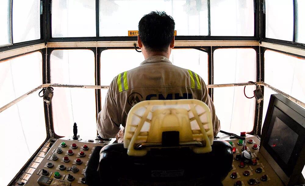操作員在30米高空3平方米左右的駕駛室里需要連續(xù)工作八個小時。沒有特別緊急情況操作員不能離開設備,因為只要人離開,設備就必須停機。(圖片攝于2017年)
