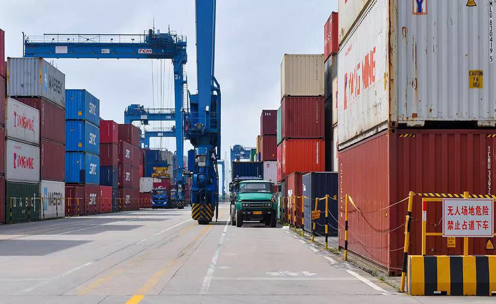 場橋遠控項目全面投入使用后,堆場作業(yè)區(qū)成為全封閉狀態(tài)的無人區(qū)。圖為2019年7月12日,遠控操作模式下作業(yè)現(xiàn)場。