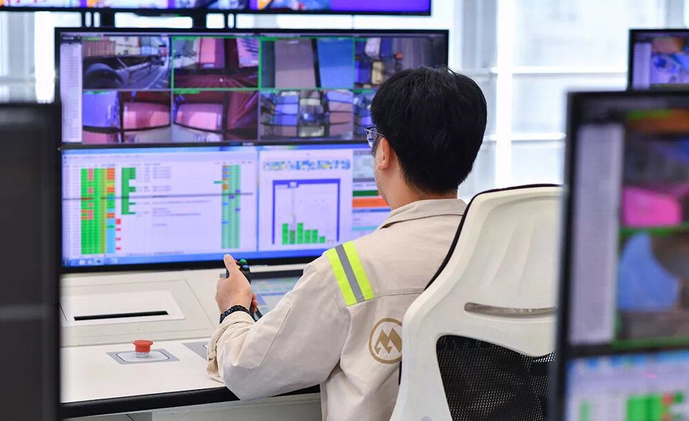 大部分的工作任務都由電腦程序自動執(zhí)行,操作員只需要坐在電腦前對關(guān)鍵環(huán)節(jié)做一些確認,即可完成堆場集